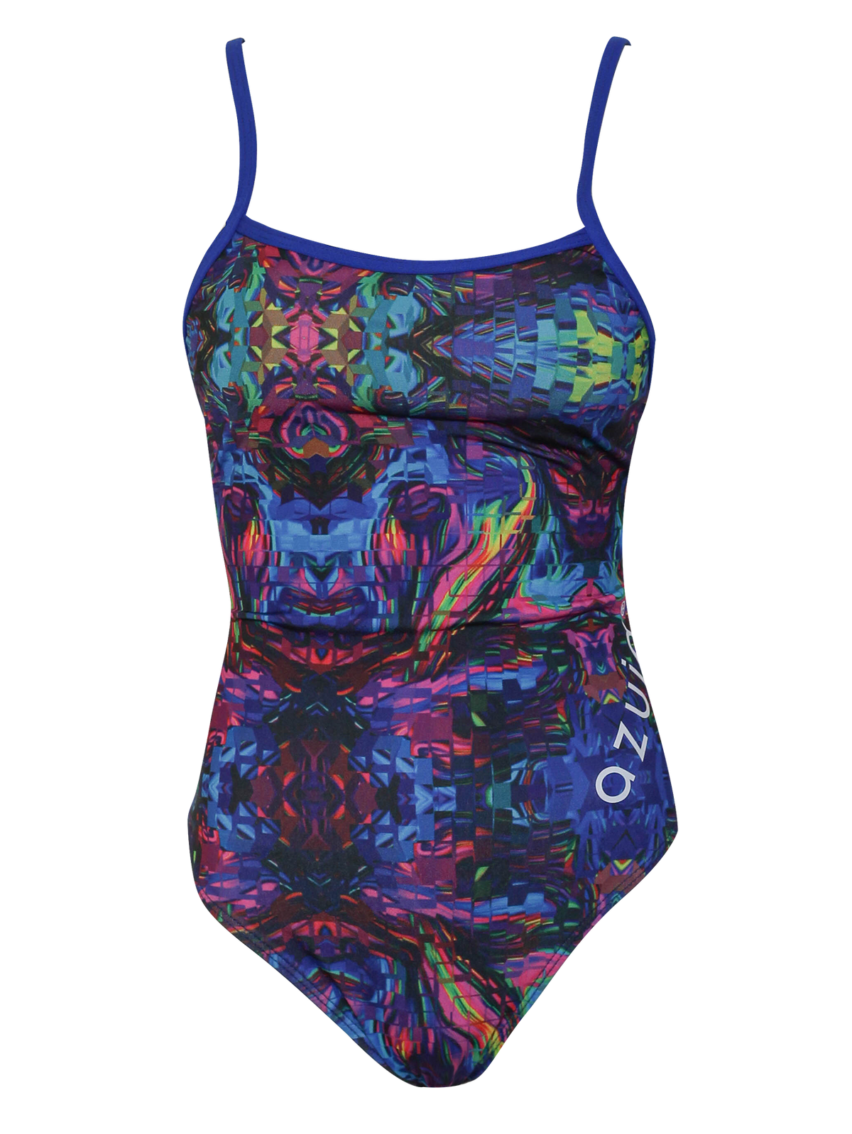 Traje con corte olímpico, cuenta con forro y copas integradas para brindar mayor seguridad, con cortes en los costados predominando tono sólido en la parte delantera, estilizando la parte de la cintura y brindando comodidad en movimiento. De tirante ancho y espalda cerrada;.