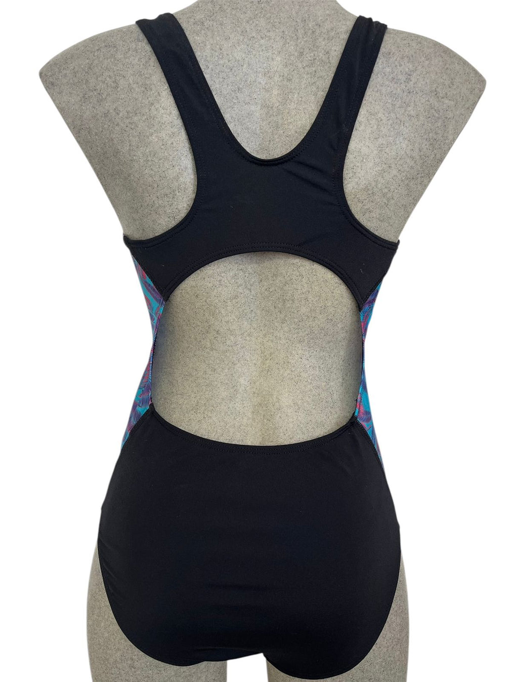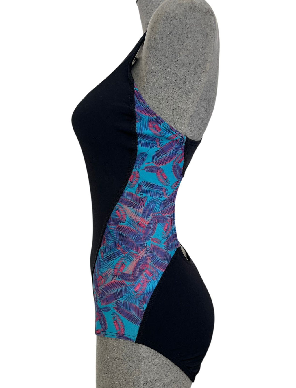 Traje con corte olímpico, en tonos conservadores y con estampados originales, cuenta con forro para brindar mayor seguridad, con cortes en los costados predominando tono sólido en la parte delantera, estilizando la parte de la cintura y brindando comodidad en movimiento. De tirante ancho y espalda abierta.